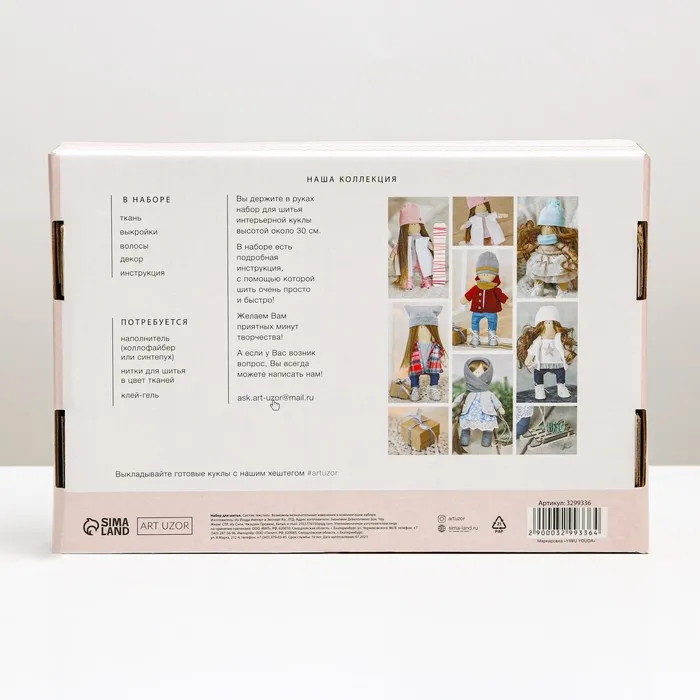 размер готовой игрушки около 30 смготовое изделие станет стильным украшением для вашего доманабор упакован в красивую коробку, он может стать отличным подарком для ребенка и взрослоговы сможете собрать целую коллекцию кукол и игрушек АРТ Узор Чем полезно?