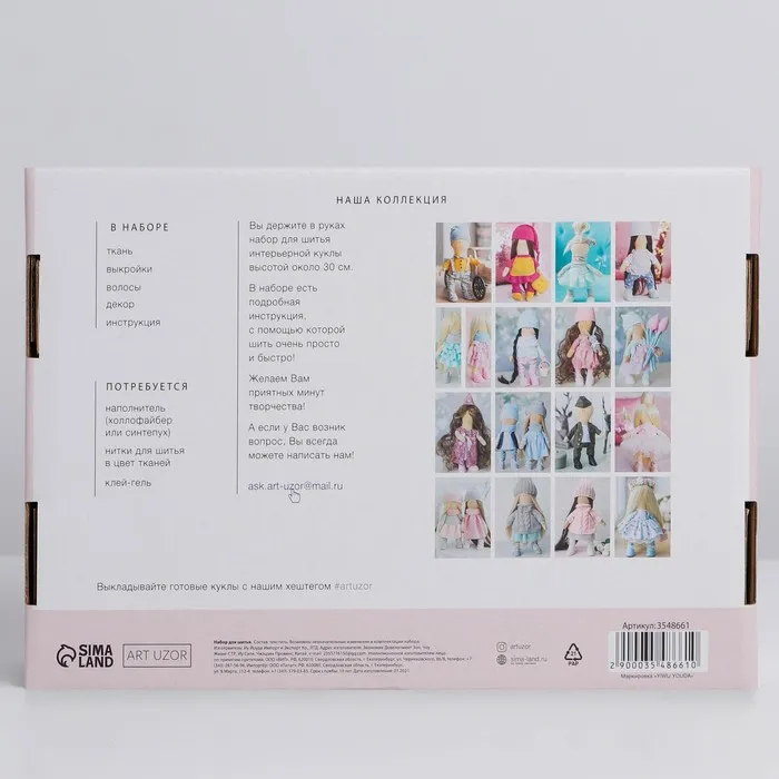 Примечание: В наборе для шитья кукол присутствуют волосы