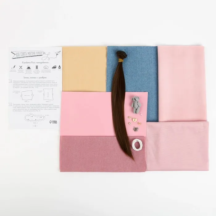 Примечание: В наборе для шитья кукол присутствуют волосы