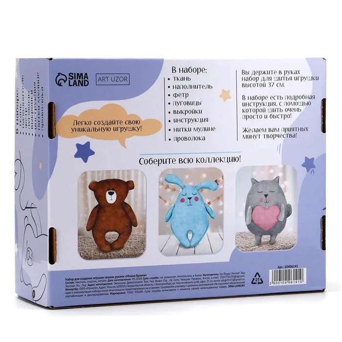 Набор для шитья. Мягкая игрушка своими руками «Мишка Брауни», 37 см — Характеристики