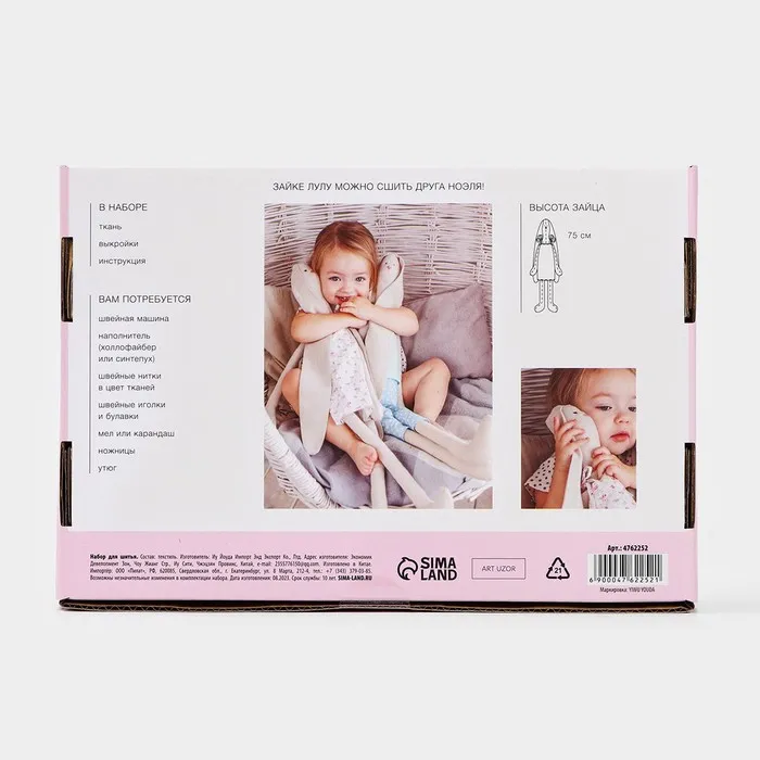 Набор для шитья. Мягкая игрушка своими руками «Зайка Лулу», 75 см — Характеристики
