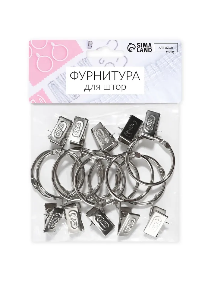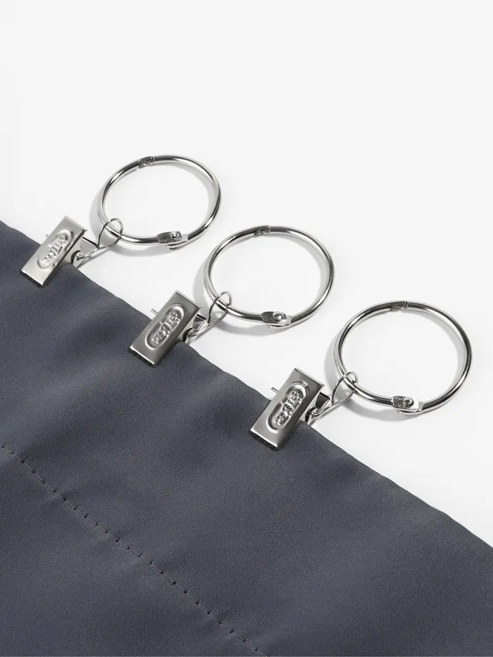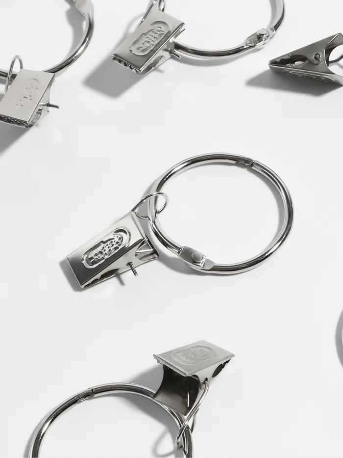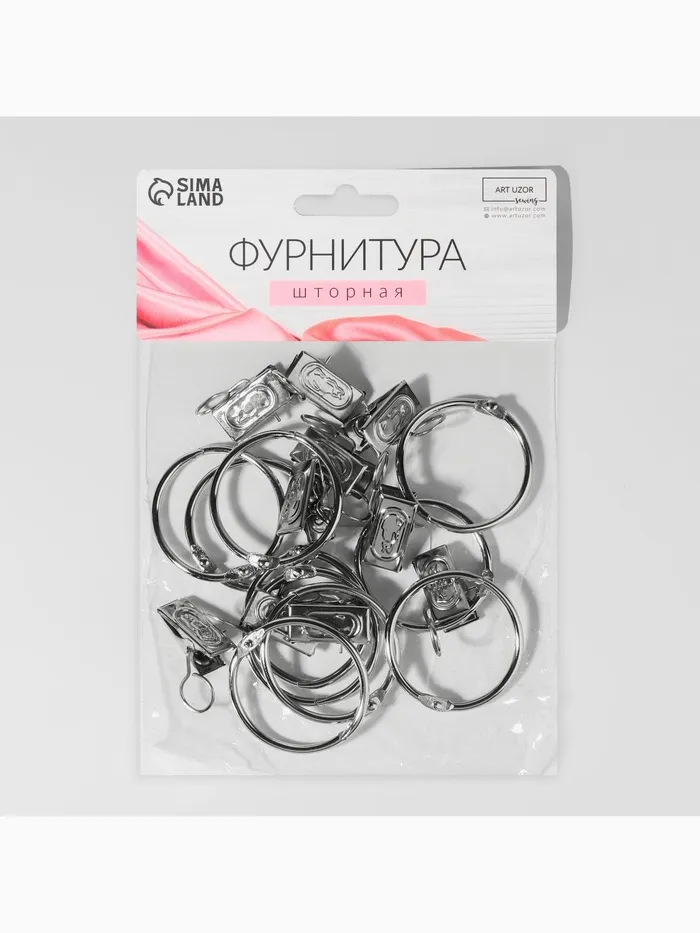 Откройте для себя элегантное решение для декорирования окон с серебряным комплектом для штор. Данный набор включает в себя все необходимые аксессуары для обустройства занавесей: утончённые разъёмные кольца и практичные зажимы в классическом серебряном исполнении.