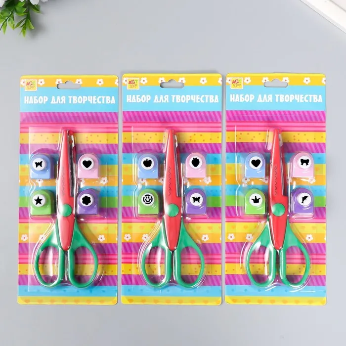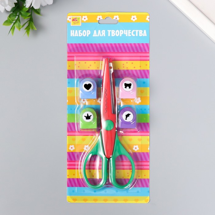 Набор для скрапбукинга «Мелкая волна», ножницы фигурные 15.5 см+4 дырокола, d=1.2 см 10×23 см — Характеристики
