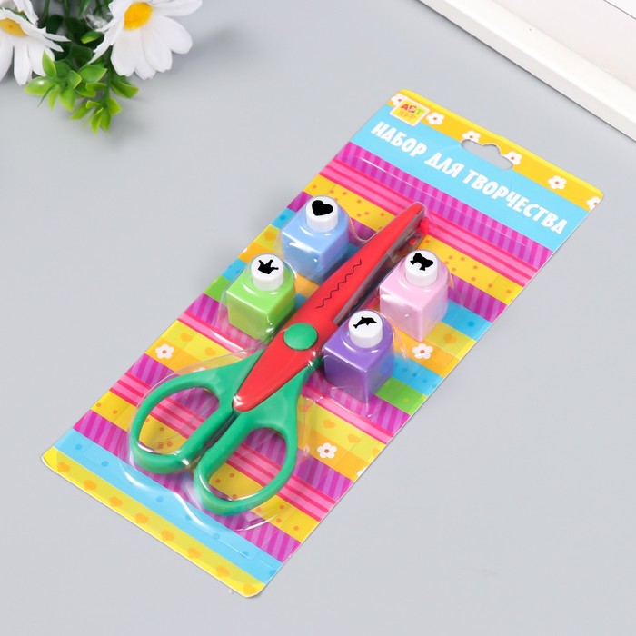 Набор для скрапбукинга «Мелкая волна», ножницы фигурные 15.5 см+4 дырокола, d=1.2 см 10×23 см