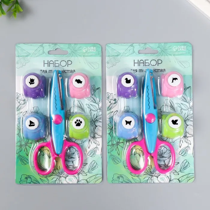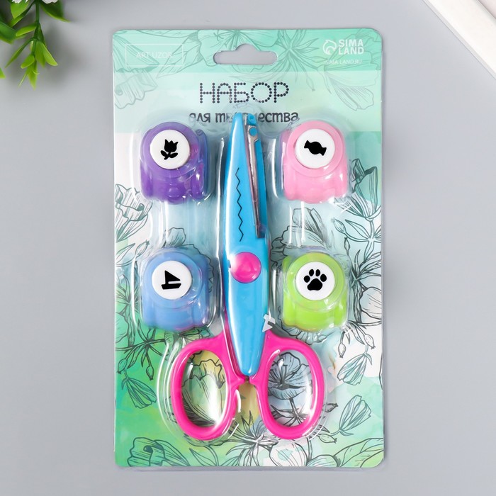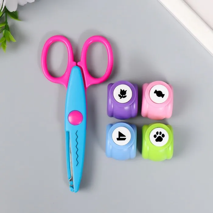 Набор для скрапбукинга «Средняя волна», ножницы фигурные 13.5 см+4 дырокола, d=1.2 см 11.2×18 см — Характеристики