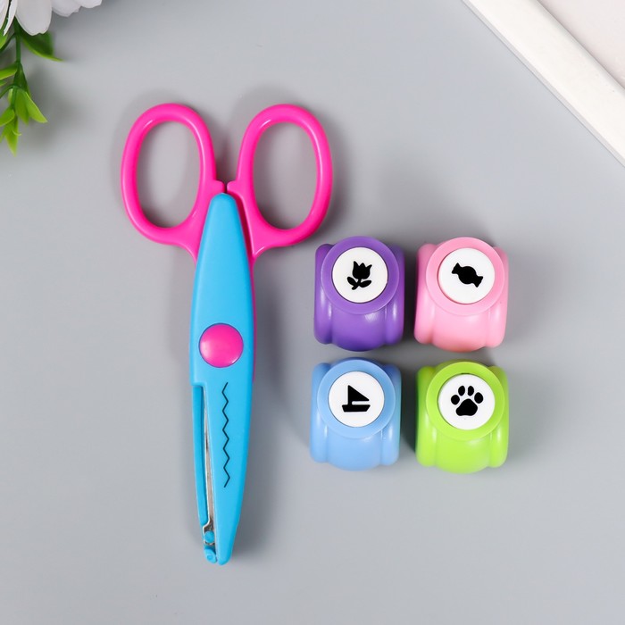 Набор для скрапбукинга «Средняя волна», ножницы фигурные 13.5 см+4 дырокола, d=1.2 см 11.2×18 см