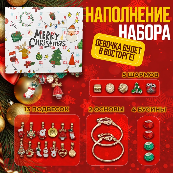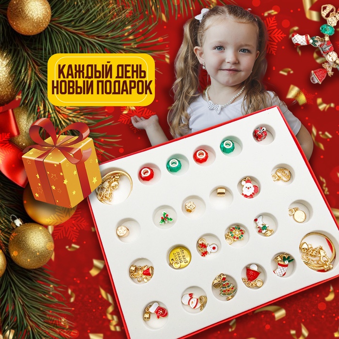 Набор для создания браслетов «Адвент календарь» новогодний — это идеальный подарок для творческих детей, которые любят создавать уникальные украшения своими руками. В набор входит 24 предмета, которые помогут сделать яркие и оригинальные браслеты с новогодними мотивами.