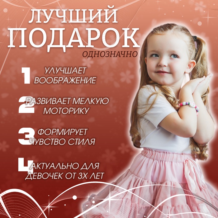 Все элементы набора аккуратно упакованы в удобную шкатулку, что делает процесс создания украшений более комфортным и организованным. Яркие цвета и оригинальные элементы вдохновят девочек на создание собственных стильных аксессуаров. Этот набор способствует развитию творческих навыков, улучшению моторики и воображения.