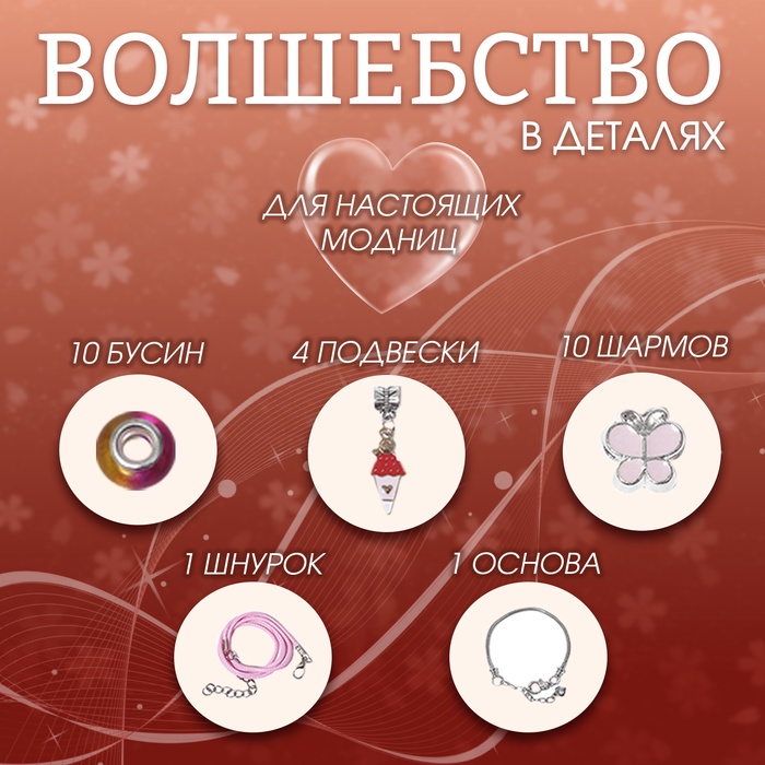 Набор для создания браслетов «Подарок для девочек» в шкатулке – это идеальный выбор для маленьких модниц, которые хотят создавать стильные украшения своими руками. В набор входят 26 разнообразных предметов, таких как бусины, нитки, подвески и аксессуары, которые позволяют создать множество уникальных браслетов.