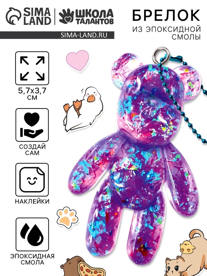 Набор для создания брелока из эпоксидной смолы «Мишка» с блёстками — Характеристики