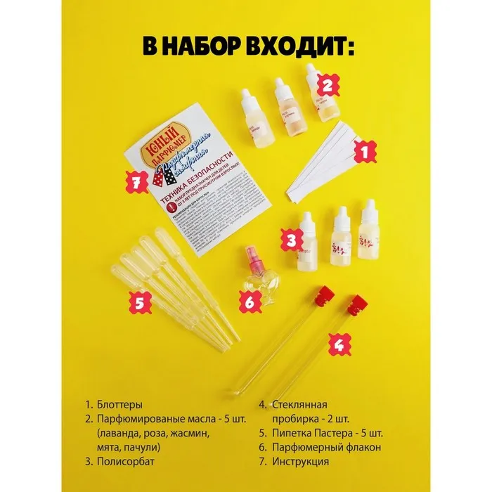 Подробная и понятная инструкция сможет помочь юному парфюмеру на каждом этапе работы избежать досадных ошибок и недочётов. Набор поможет развить у малыша внимательность, усидчивость, умение следовать инструкции, а также воображение и творческое мышление.