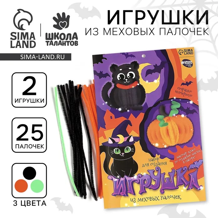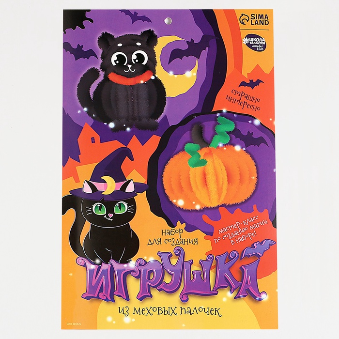 Набор для создания игрушки из меховых палочек на хэллоуин «Тыква и черный кот» — Характеристики