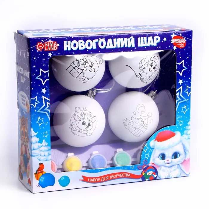 Ёлочные шары под раскраску на новый год «Чудесная история», краски, 4 шт, набор для творчества