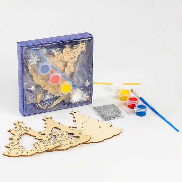 Ёлочное украшение под раскраску «Модник» 4 шт., кисть