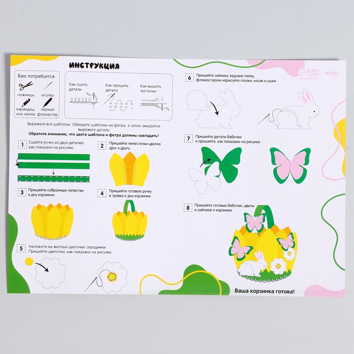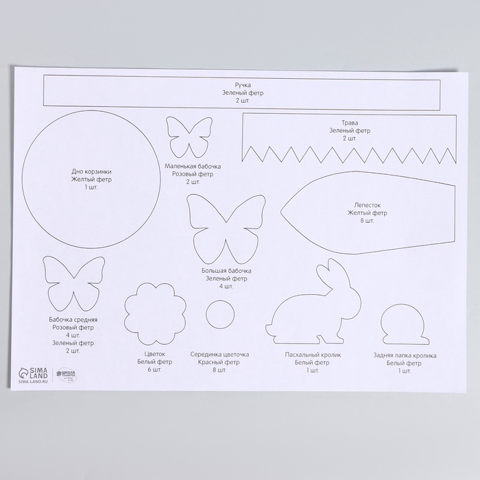 Набор для создания корзинки из фетра на пасху «Пасхальный Зайка» — Характеристики
