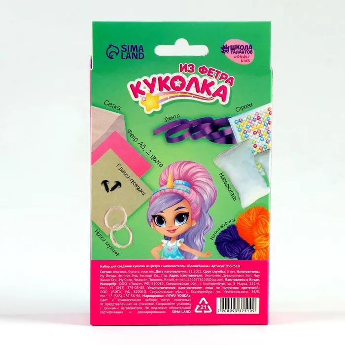 Детям нравится создавать поделки из самых невероятных материалов. Оригинальный набор для создания фетровой игрушки по-настоящему увлечёт ребёнка и станет удачным подарком для талантливого малыша!