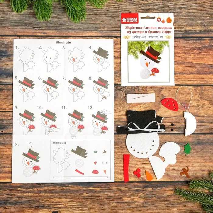 Набор для создания подвесной ёлочной игрушки из фетра и бумаги гофре «Снеговик в шляпе» — Характеристики