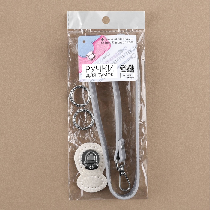 Набор для создания сумки, 4 предмета, кольцо-карабин - 2 шт., ручка, застёжка, белый, серебряный — Характеристики