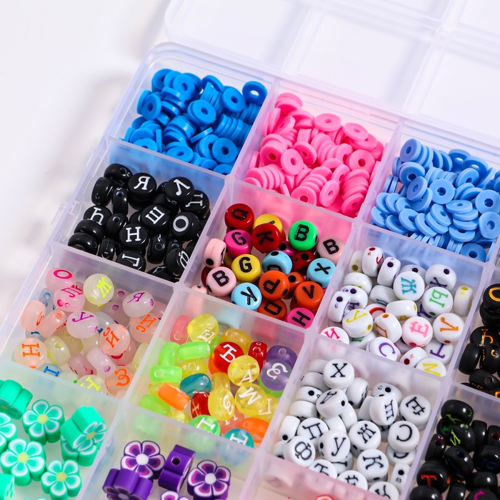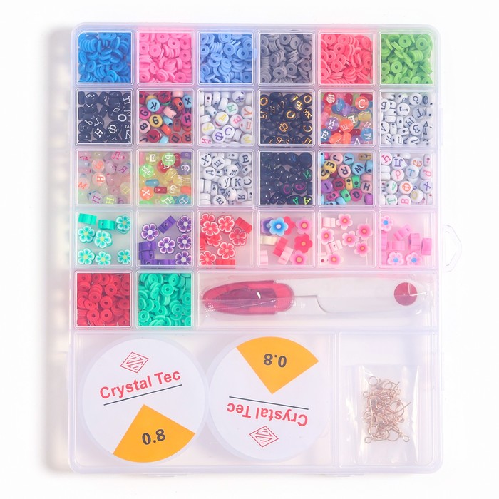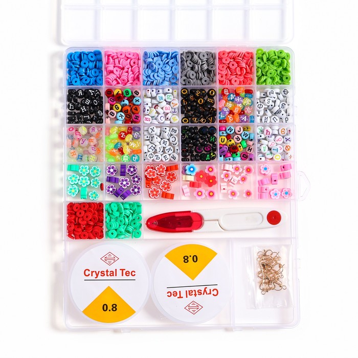 Набор для создания украшений «Азбука», набор 26 видов бусин, 2 лески, пинцет, фурнитура — Характеристики