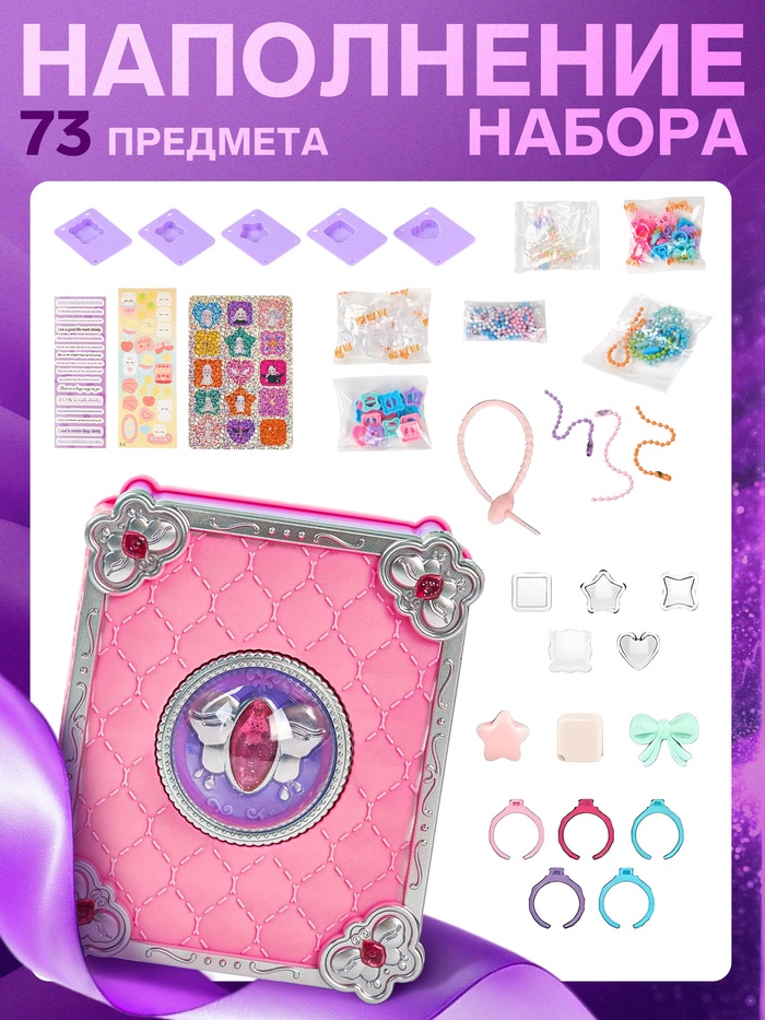Набор для создания украшений детский Выбражулька «Волшебная книга», 73 в 1, кольца, брелоки — Характеристики