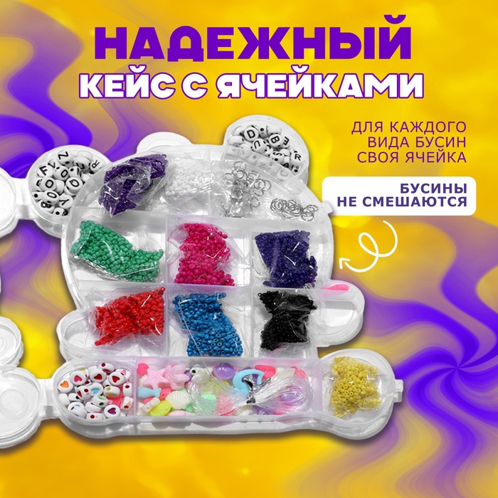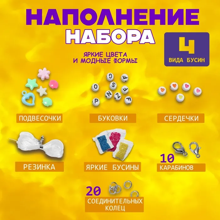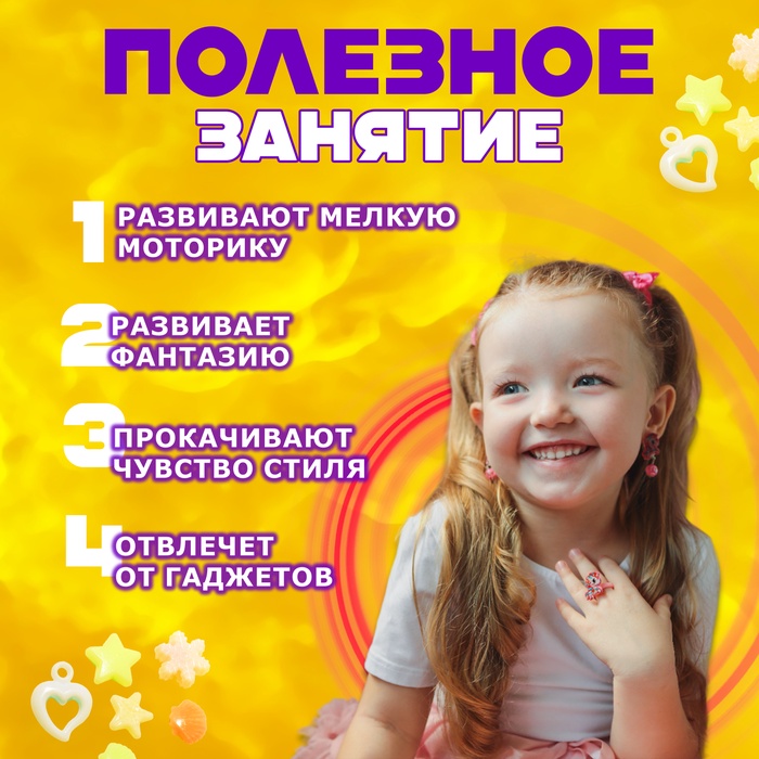 Набор для создания украшений «Мишка», 4 вида бусин, 20 соединительных колец, 10 карабинов, резинка — Характеристики