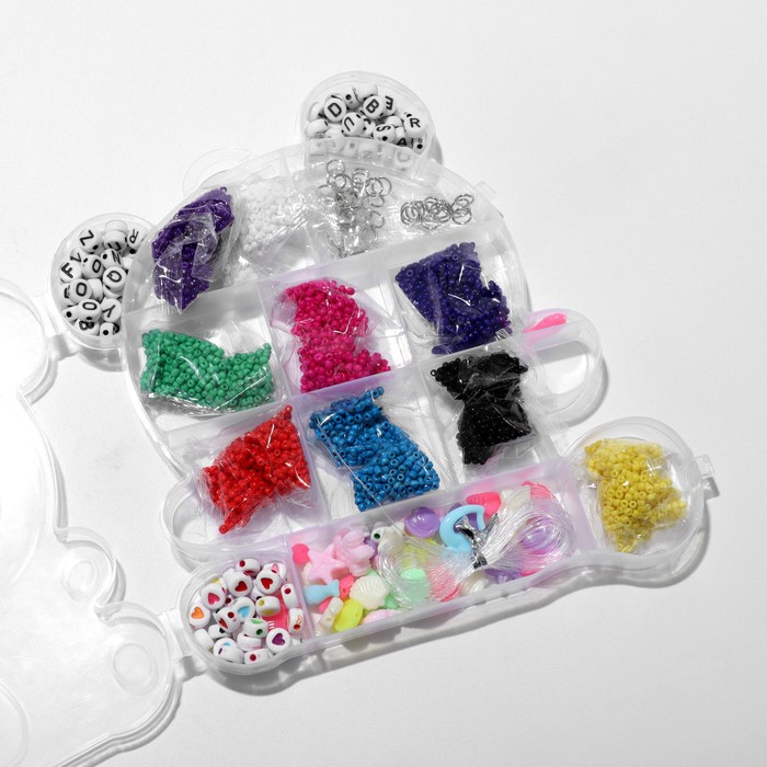 Набор для создания украшений «Мишка», 4 вида бусин, 20 соединительных колец, 10 карабинов, резинка