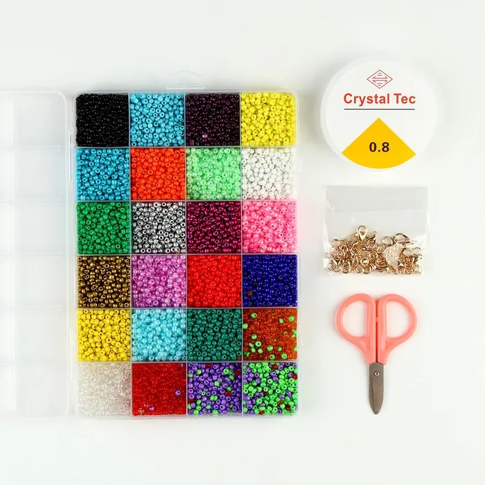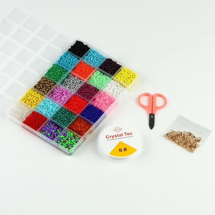 Набор для создания украшений, набор 24 цвета, 1 шт. — 2 мм, леска, ножницы, фурнитура — Характеристики