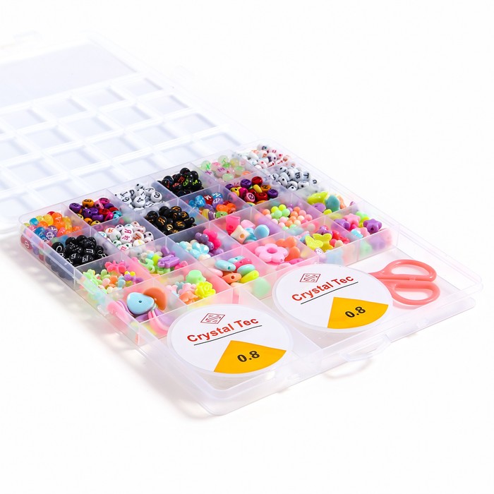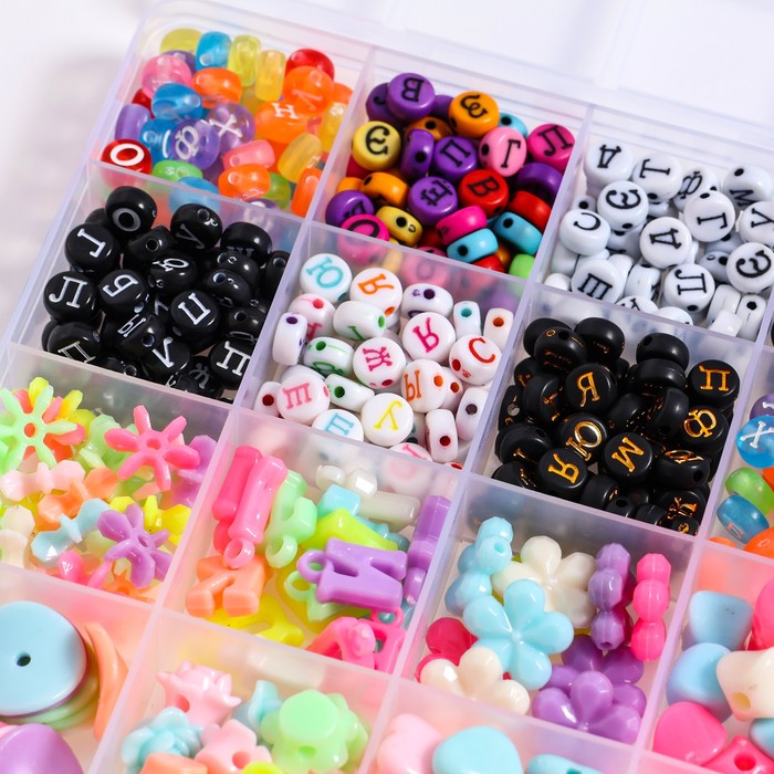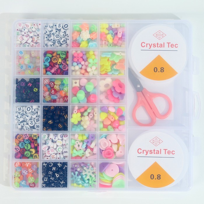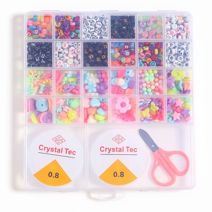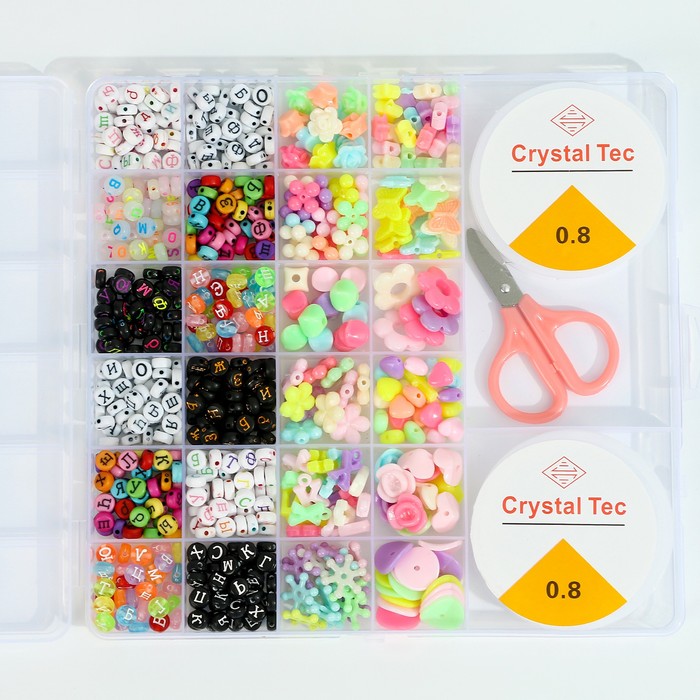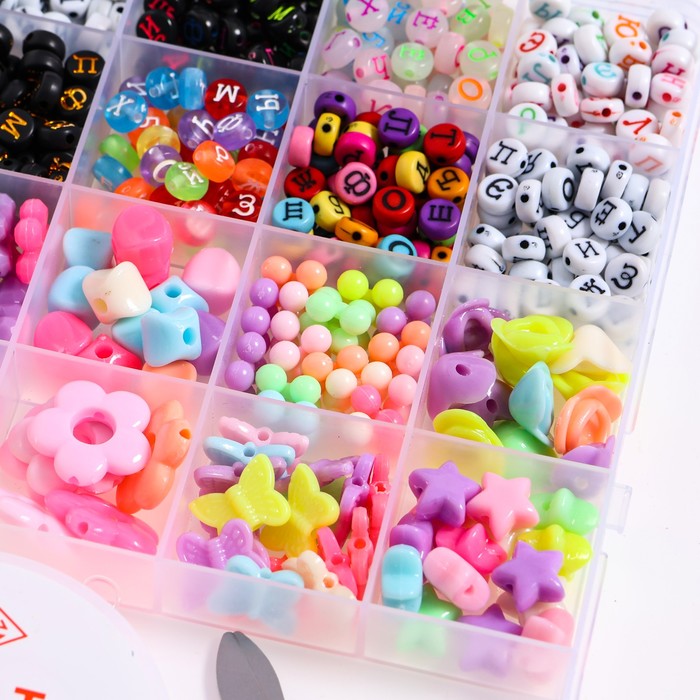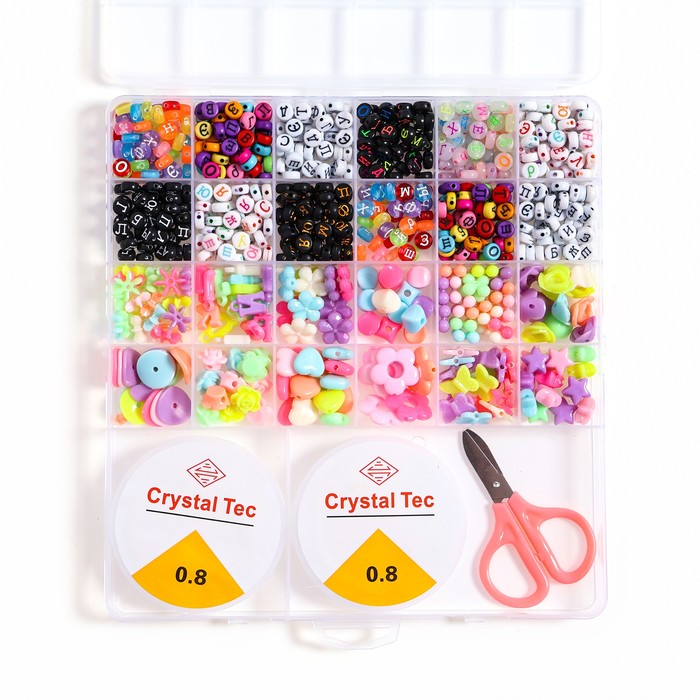 Набор для создания украшений с русским алфавитом, 24 вида бусин, 2 лески, ножницы — Характеристики