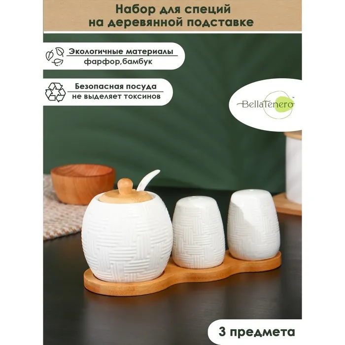 Добавьте изюминки вашей кухне с помощью нашего стильного набора для специй Adelica! Две удобные баночки на деревянной подставке – это не только практичное решение для хранения, но и стильное украшение.