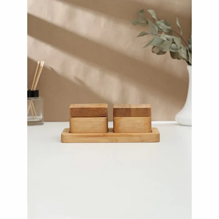 Набор для специй Adelica, 2 банки с крышкой на деревянной подставке, пропитан маслом, 20×10×1,8 см, берёза — Характеристики