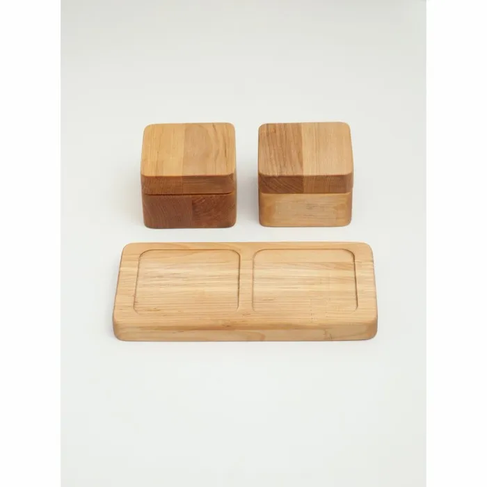 • Компактные размеры: (20×10×1,8 см) – подставка не займет много места на столешнице. Баночки (размеры 8×8×5,3 см) идеально подходят для хранения небольших объёмов.