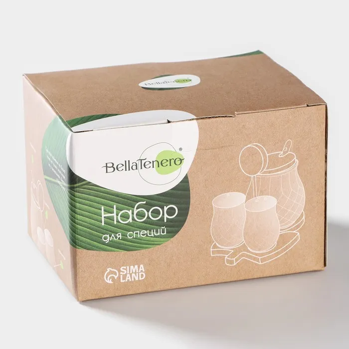 Набор для специй BellaTenero изготовлен из качественного фарфора. Кухонные изделия из фарфора отличаются прочностью и надёжностью, устойчивы к появлению царапин и резким перепадам температур. Благодаря оригинальному дизайну набор отлично впишется в интерьер вашей кухни и станет настоящей изюминкой при сервировке.