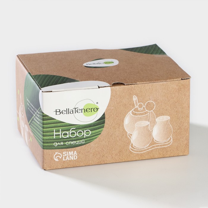 Набор для специй BellaTenero изготовлен из качественного фарфора. Кухонные изделия из фарфора отличаются прочностью и надёжностью, устойчивы к появлению царапин и резким перепадам температур. Благодаря классическому дизайну набор легко впишется в любой интерьер кухни, а также прекрасно подойдёт в качестве подарка.