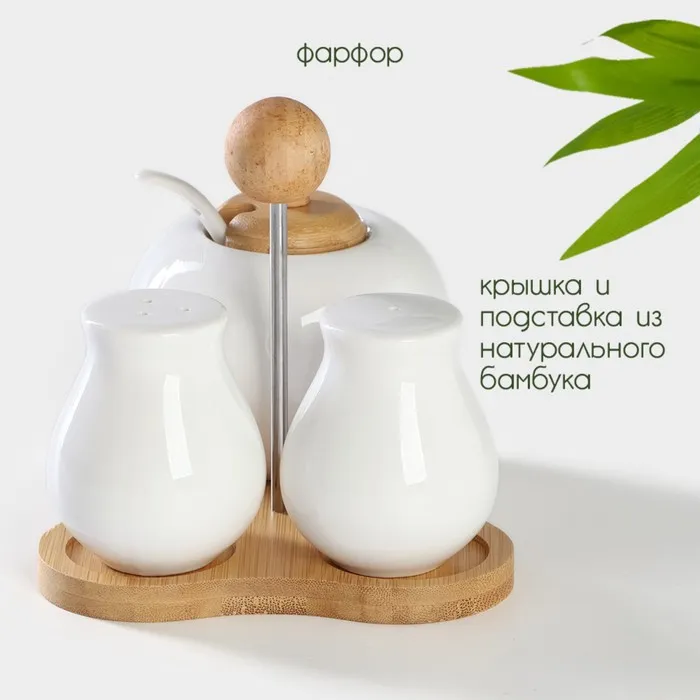 Набор для специй BellaTenero, 3 предмета: солонка 80 мл, перечница 80 мл, сахарница с ложкой 300 мл, фарфор, белый — Характеристики