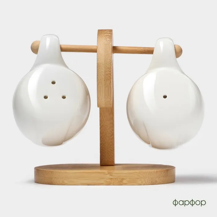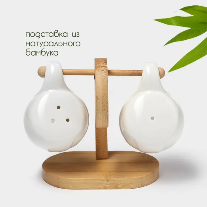 Набор для специй BellaTenero «Баночки», солонка 110 мл, перечница 110 мл, на бамбуковой подставке-держателе, фарфор, белый — Характеристики
