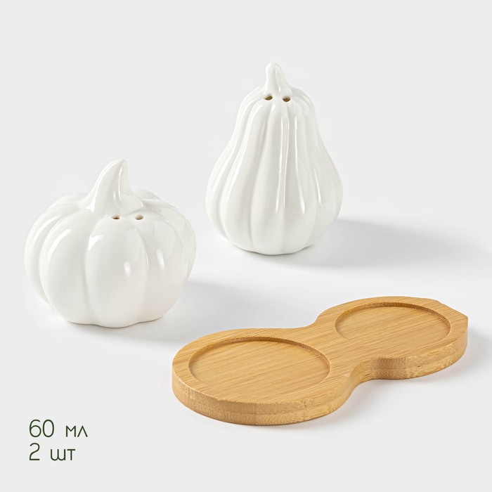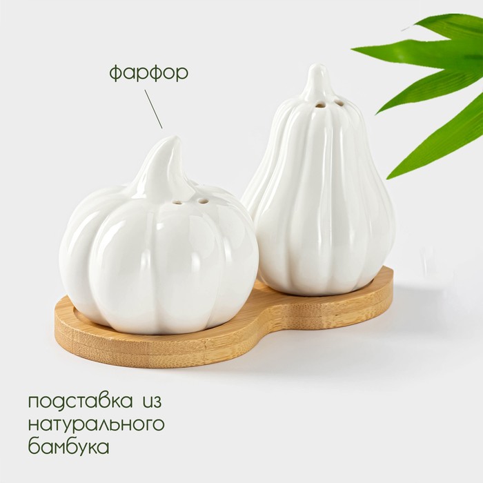 Набор для специй BellaTenero «Витамины», солонка 60 мл, перечница, 60 мл, на бамбуковой подставке, фарфор, белый — Характеристики
