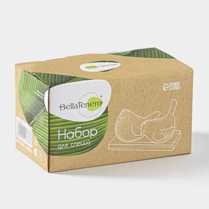 Набор для специй BellaTenero «Воробушки» изготовлен из качественного фарфора. Кухонные изделия из фарфора отличаются прочностью и надёжностью, устойчивы к появлению царапин и резким перепадам температур. Благодаря оригинальному дизайну и причудливым формам набор отлично впишется в интерьер вашей кухни и станет настоящей изюминкой при сервировке.