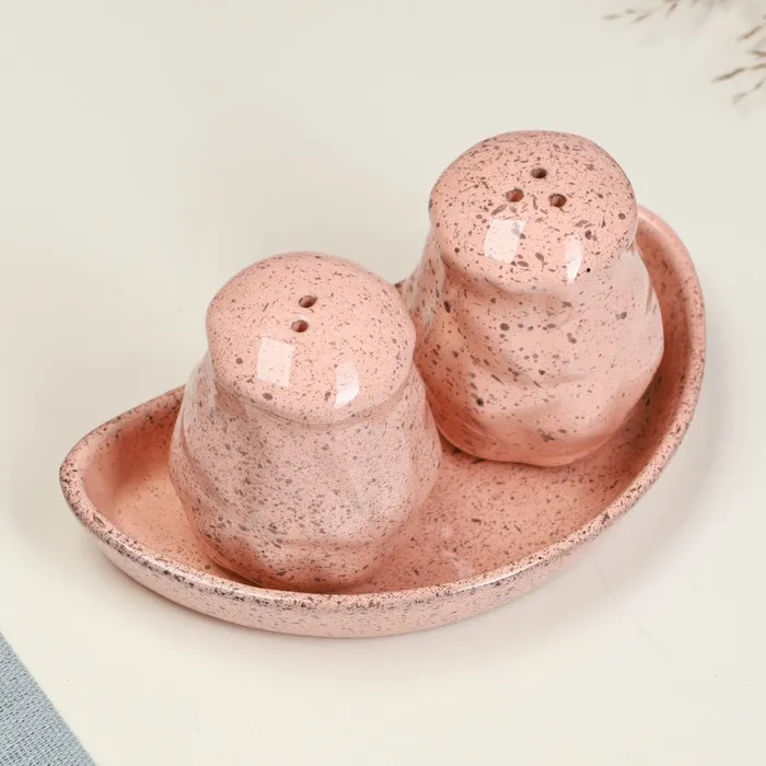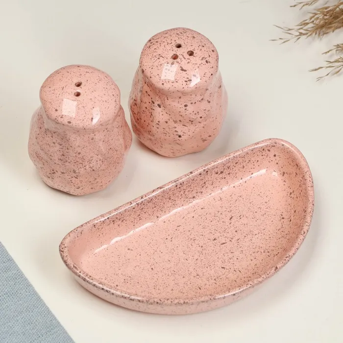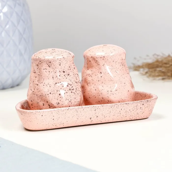 Набор для специй Борисовская керамика «Фламинго», солонка, перечница, подставка, розовый — Характеристики