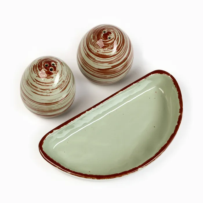 Набор для специй Борисовская керамика «Мята», солонка, перечница, на подставке, зелёный — Характеристики