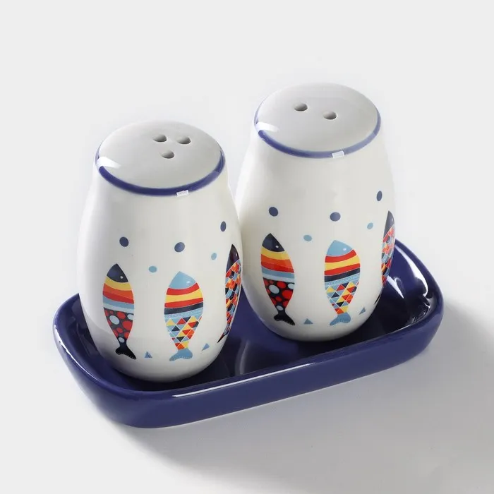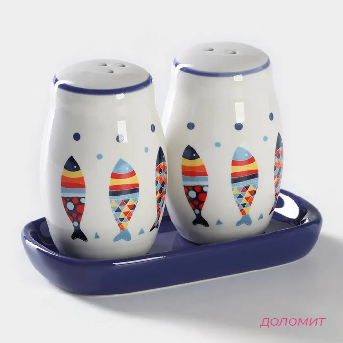 Набор для специй Доляна «Емеля», солонка, перечница, 130 мл, доломит, белый, синий — Характеристики