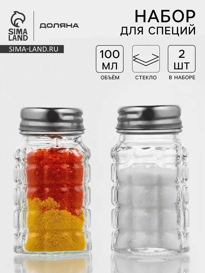 Набор для специй Доляна «Квадраты», солонка, перечница 100 мл, стекло, прозрачный — Характеристики