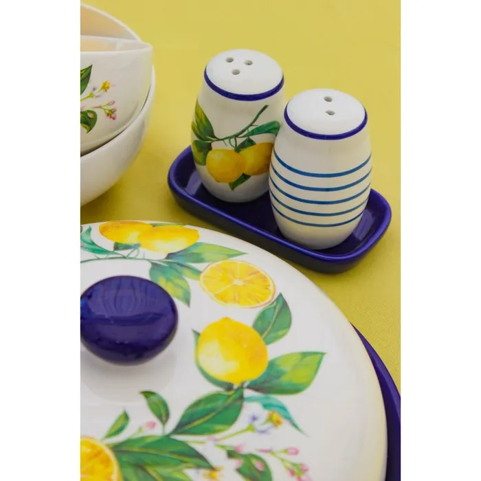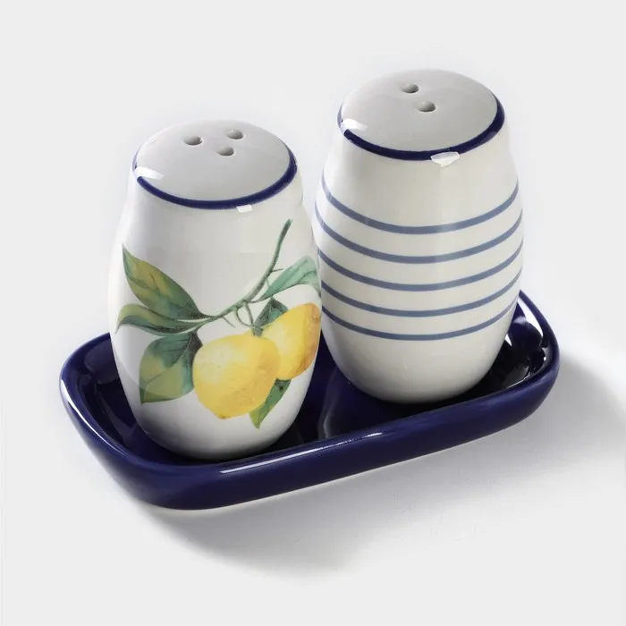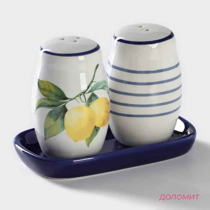 Набор для специй Доляна «Лимон», солонка, перечница 130 мл, доломит, белый, синий — Характеристики