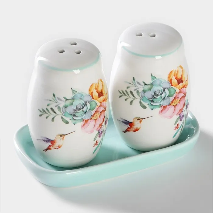 Набор для специй Доляна «Пташка», солонка, перечница, 130 мл, доломит, белый, голубой — Характеристики