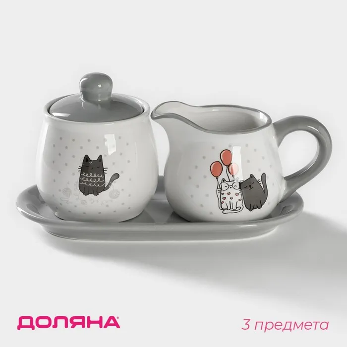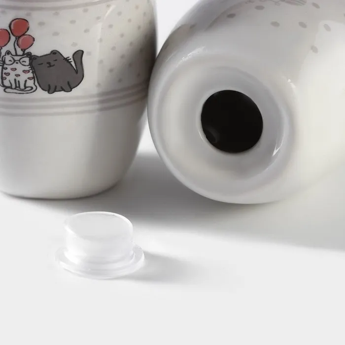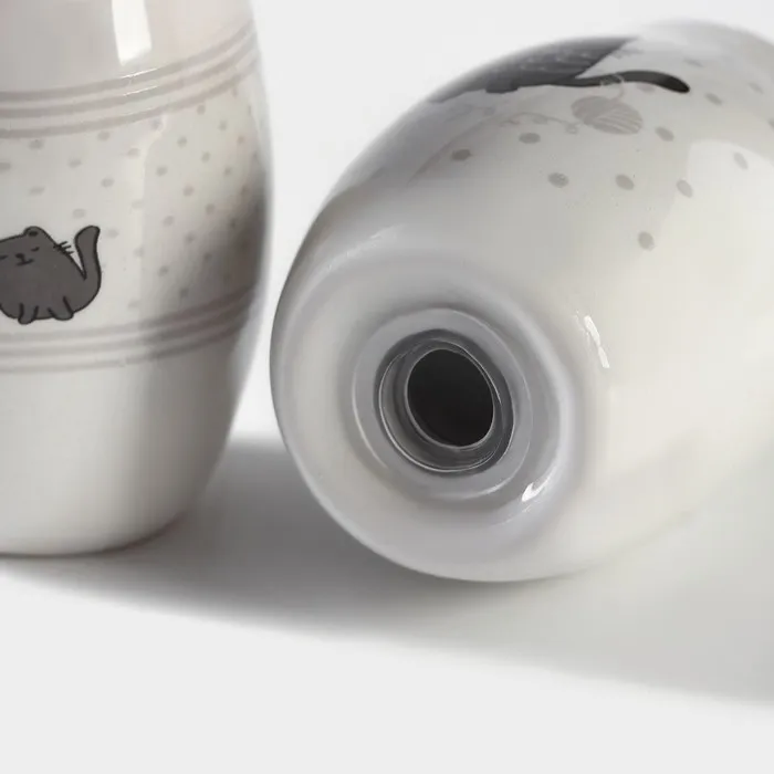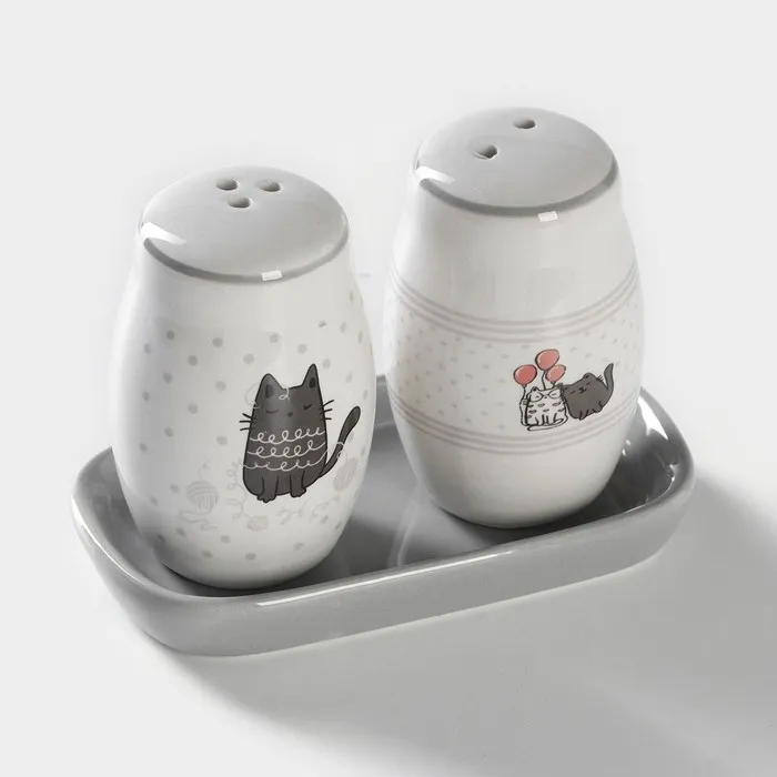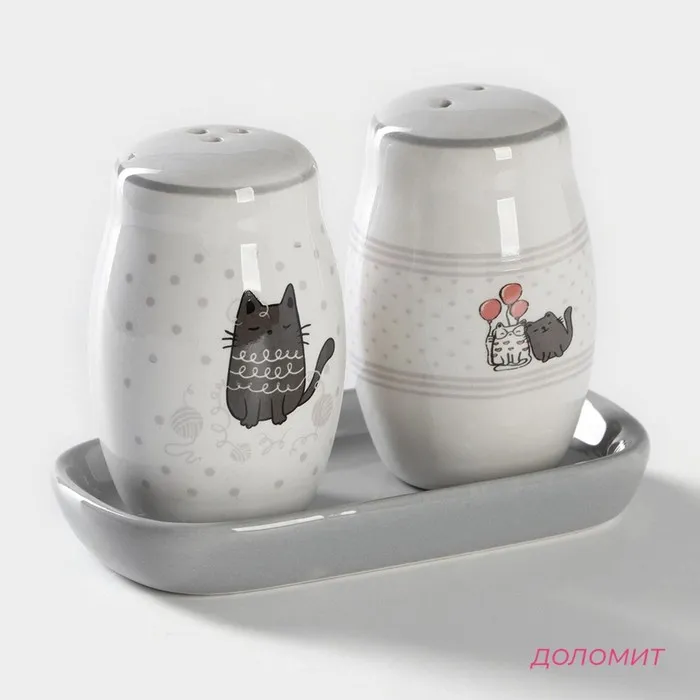 Набор для специй Доляна «Уютные коты», 3 предмета: солонка 80 мл, перечница 80 мл, подставка — Характеристики