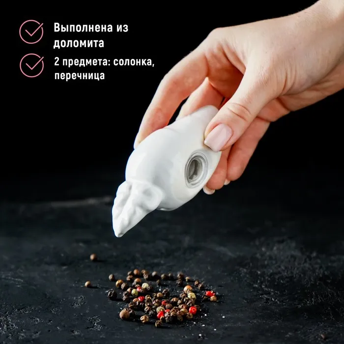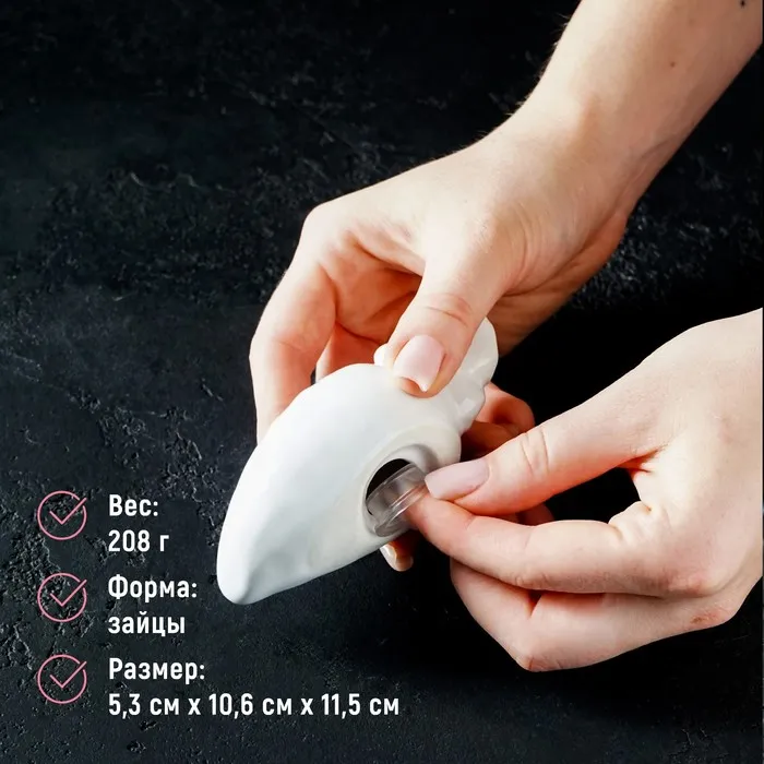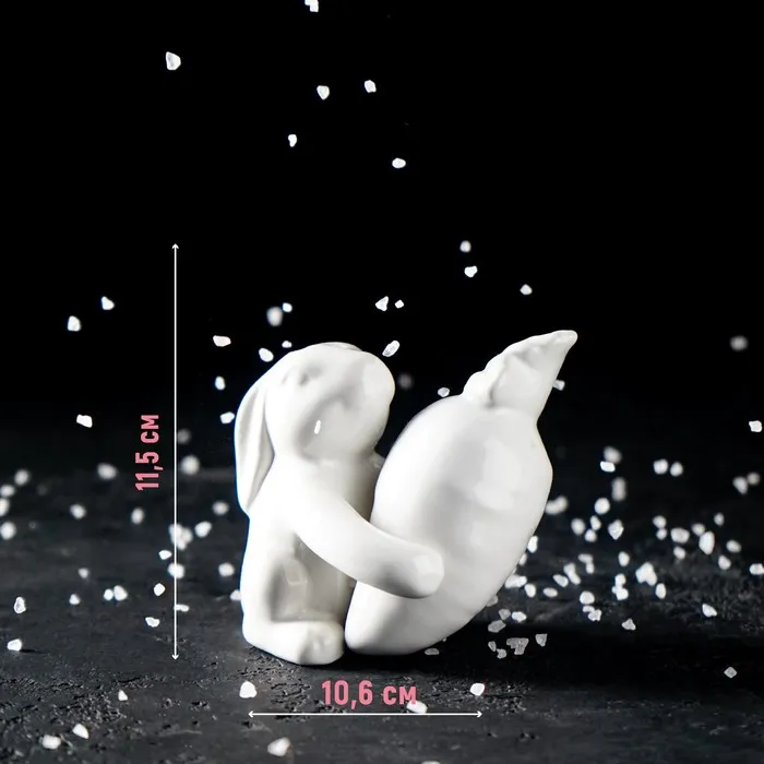 Набор для специй Доляна «Зайка», солонка 50 мл, перечница 40 мл, доломит, белый — Характеристики