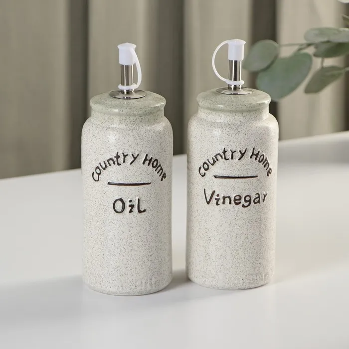 Набор для специй и масел «Домик в деревне», 4 предмета: солонка 115 мл, перечница 115 мл, бутыль для масла 350 мл, бутыль для уксуса 350 мл, керамика — Характеристики