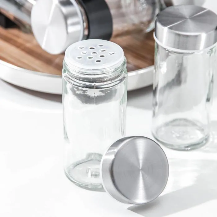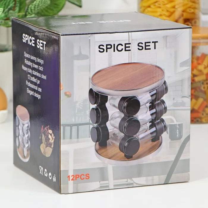 Набор для специй из стекла на подставке «Хай-тек», 19×19×21,5 см, ёмкость, 90 мл, 4×9,5 см, 12 шт — Характеристики