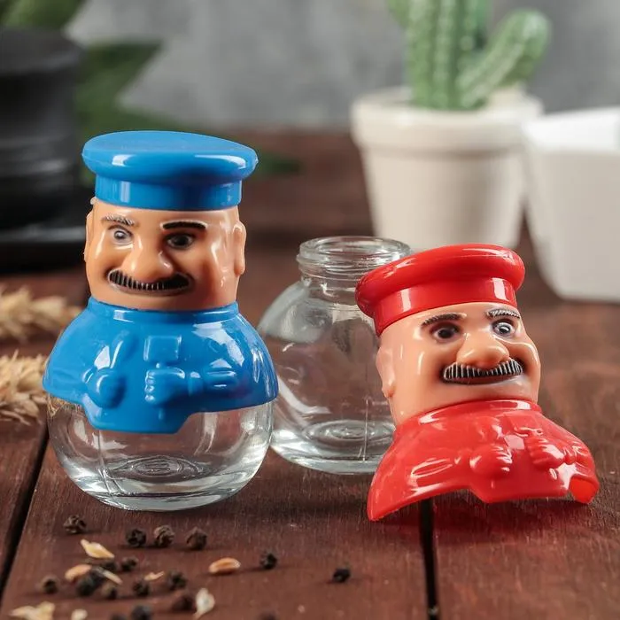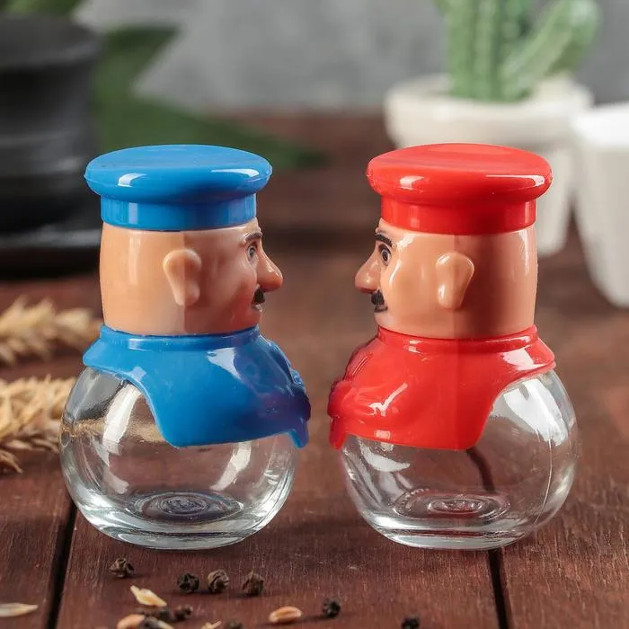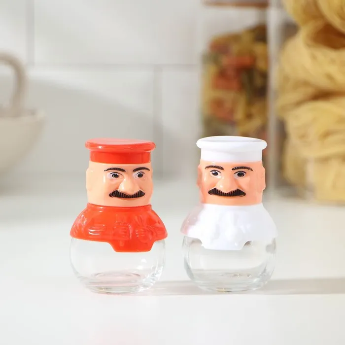 Набор для специй из стекла на подставке «Поварёнок», 2 предмета: солонка, перечница, цвет МИКС — Характеристики