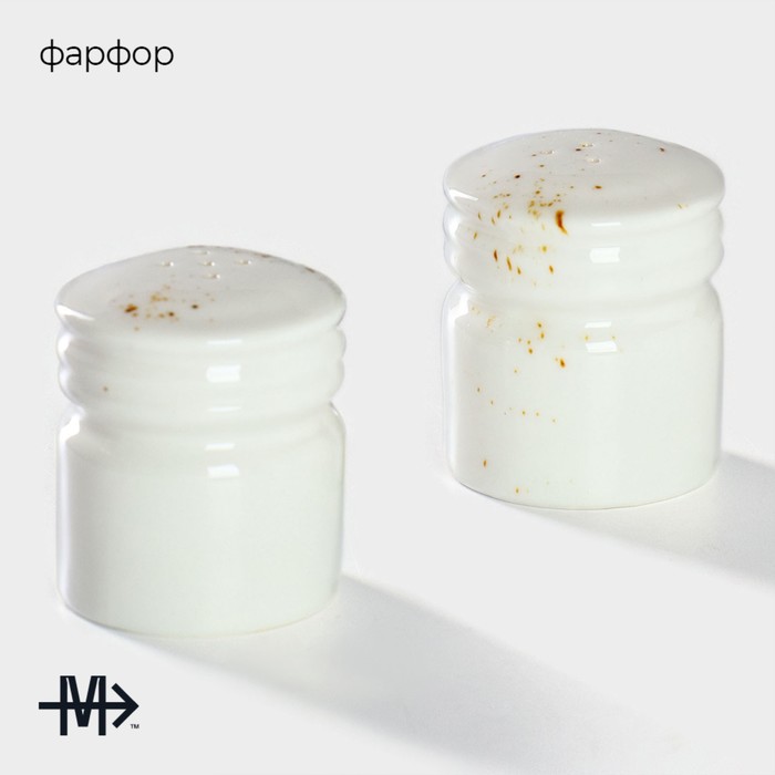 Набор солонки и перечницы «Церера» от Magistro — белый фарфоровый дуэт с точечным рисунком, созданный для тех, кто ценит порядок и эстетику на кухонном столе. Фигурная форма придаёт изделиям характер, а классический объём 80 мл удобен для повседневного использования. Глазурованная поверхность легко очищается, в том числе в посудомоечной машине, что сохраняет свежесть внешнего вида надолго.