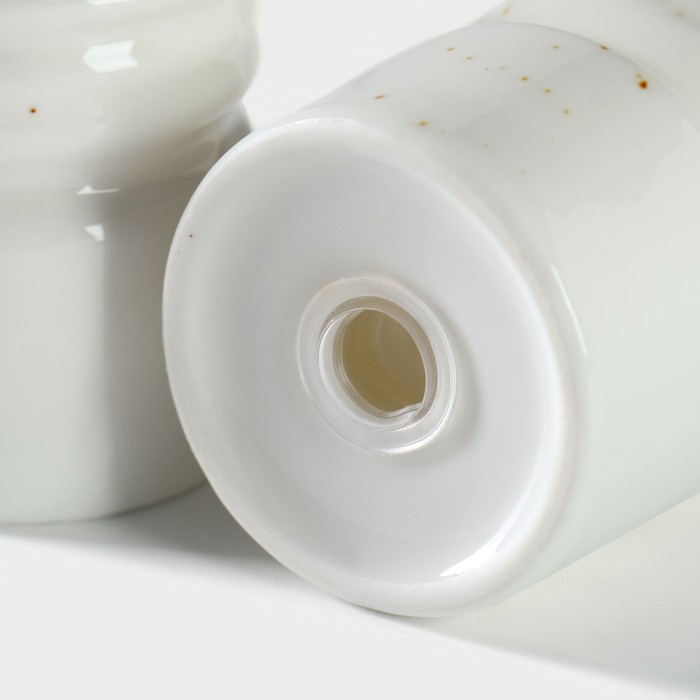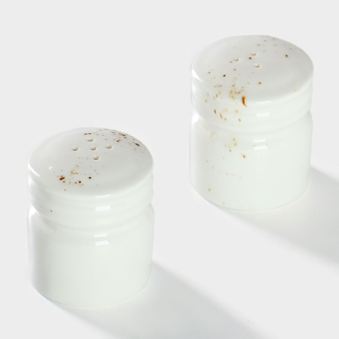Такой набор не просто хранит соль и перец — он становится частью сервировки. Белый фарфор с аккуратной точечной графикой вписывается в любую стилистику: от скандинавской до современной классики. Даже обычная трапеза выглядит аккуратнее, когда на столе стоят соль и перец в парных ёмкостях, а не в случайных баночках.